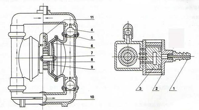 3 | 配氣閥 | 6 | 隔膜 | 9 | 中間支架 |
