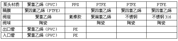 | 型號 | 流量 L/H | 壓力 Bar | 沖程頻率 次/分鐘 | 功率 W | 進出口徑 mm |