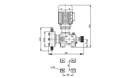 | 型號 (MODEL) | 流量 FLOW (L/H) | 壓力 PRESSURE (MPa) | 沖次 stroke (min-1) | 電機功率Power (kw) | 進出口徑CALIBER (DN) | 重量 WEIGHT (kg) |