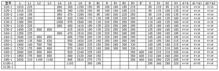 | G25-1 | 960 | 2.4 | 0.75-6級(jí) | 960 | 2 | 1.5-6級(jí) | 125~1250 | 0.1~3 | 1.5 |