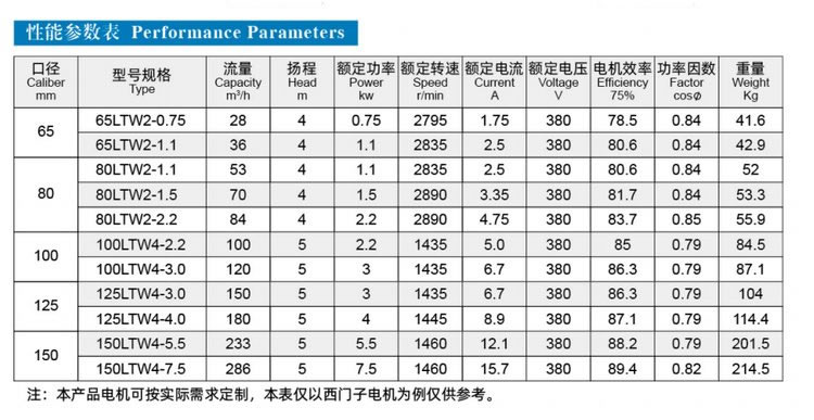 65WLP2-0.75, 80WLP2-1.1,80WLP2-1.5,80WLP2-2.2,100WLP4-3.0,125WLP4-3.0,125WLP4-4.0,150WLP4-5.5,150WLP4-7.5