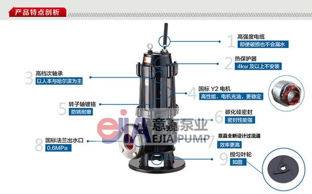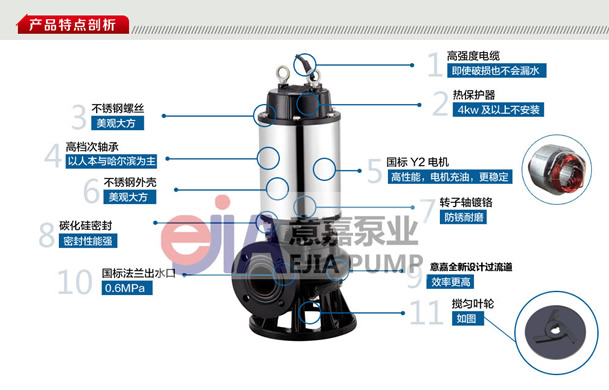 三、JYWQ自動攪勻潛水排污泵產品特點: