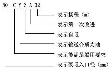 三、CYZ-A型臥式防爆自吸式離心油泵型號意義: